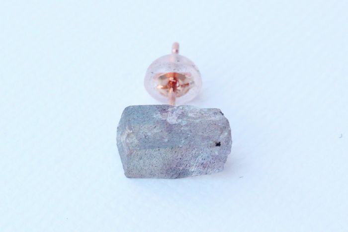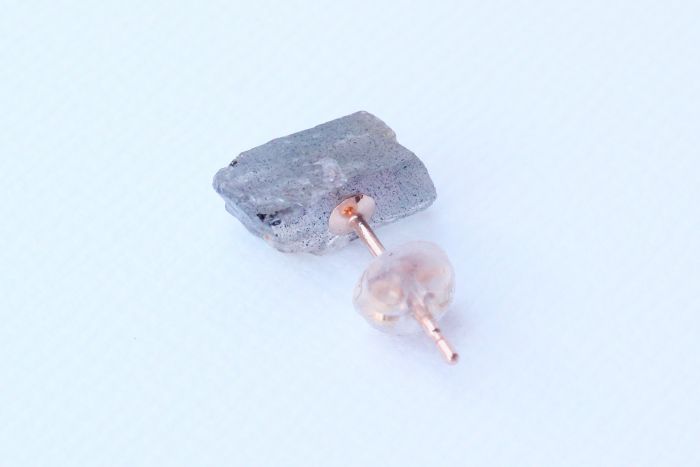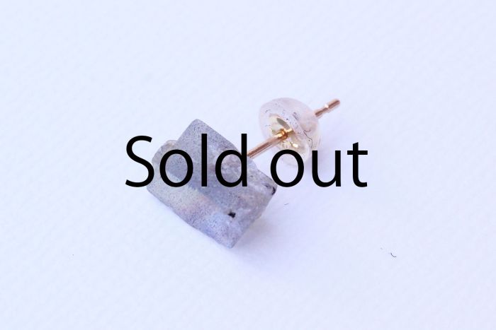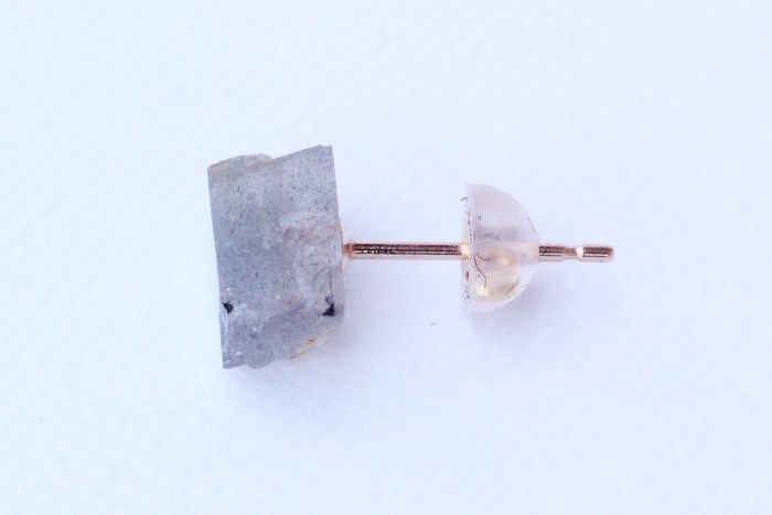 光の当たり方によって、青や緑に輝く不思議なラブラドライトの原石の表情をそのままに表面だけ磨きました。