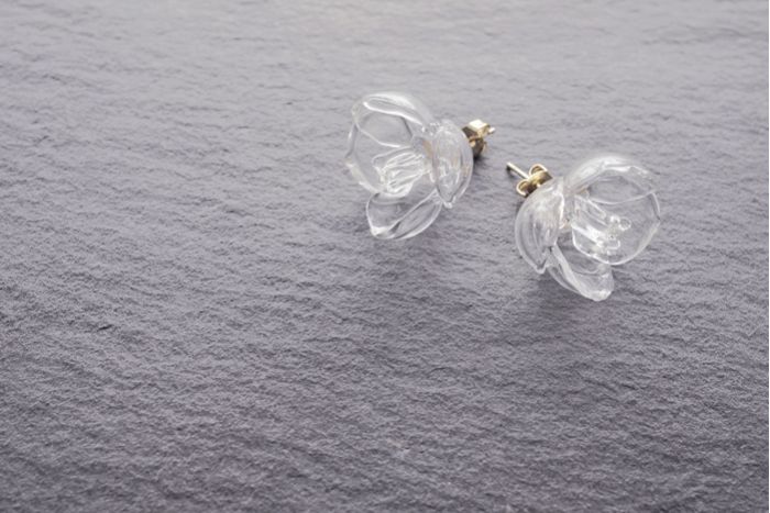 ガラスの椿は、あでやかで凛とした印象に。また、冬に咲く寒椿は、和の装いにも花を添えます。ガラス大きさ:約Φ20・15(mm)真鍮 本金メッキ