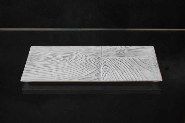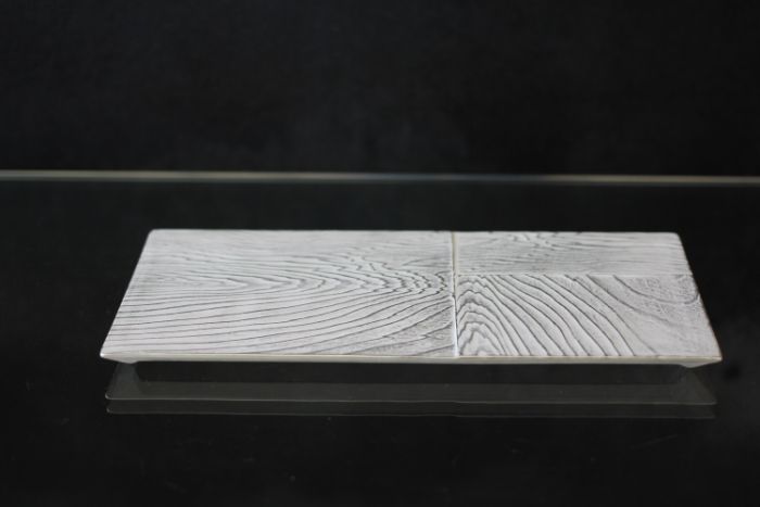 素材・・磁器 加飾・・木目、銀彩 成型方法・・型