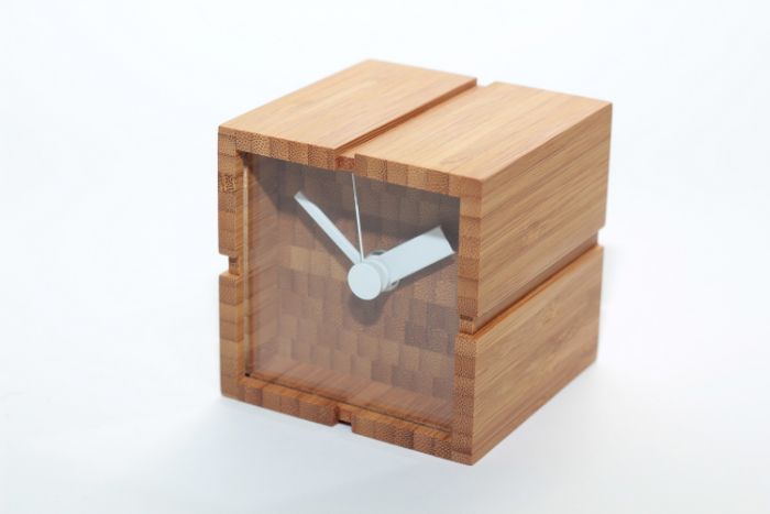 竹集成材で作られた置時計「CUBE(キューブ)」