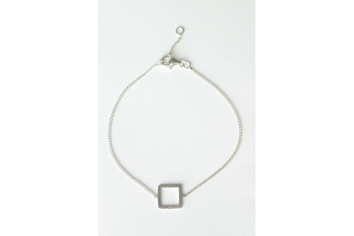シンプルながらも印象的な四角いスターリングシルバーのブレスレット。