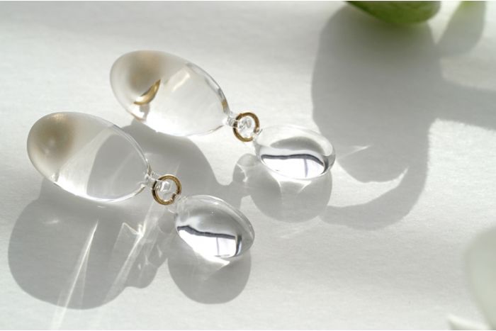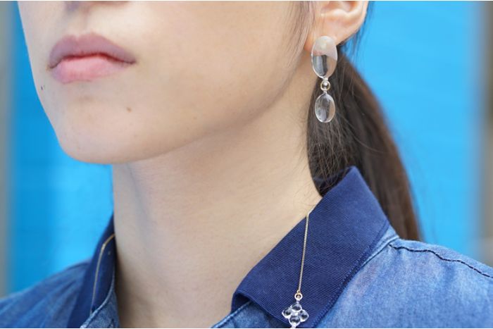 オーバル型のガラスが耳元で輝き、ナチュラルで上品な女性に演出してくれます。 ガラス大きさ13×21 (mm) /10×14(mm) 真鍮 本金メッキ